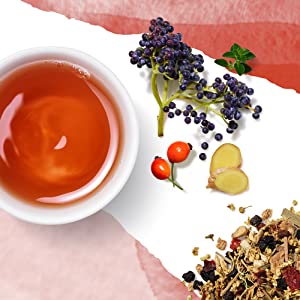 Immune Boost tea blends echinacea, dandelion root, dandelion leaf, rosehip, ginger, cinnamon & licorice for a potent & efficacious cold and flu season tea that supports immunity and rejuvenates vital organs.*